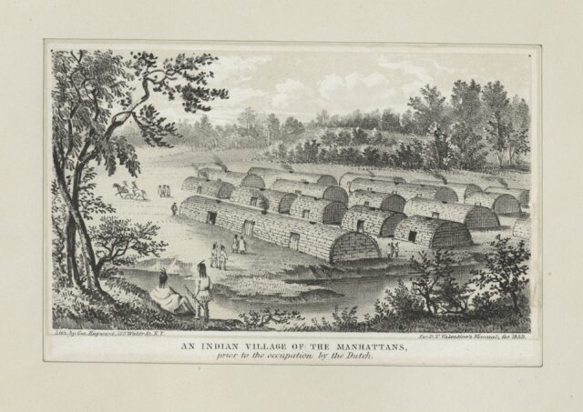 George Hayward, “Illustration of An Indian village of the Manhattans, prior to the occupation by the Dutch,” 1858, Valentine’s Manual, The Miriam and Ira D. Wallach Division of Art, Prints and Photographs: Picture Collection, The New York Public Library. Source: https://morrisjumel.org/stories/living-landscape